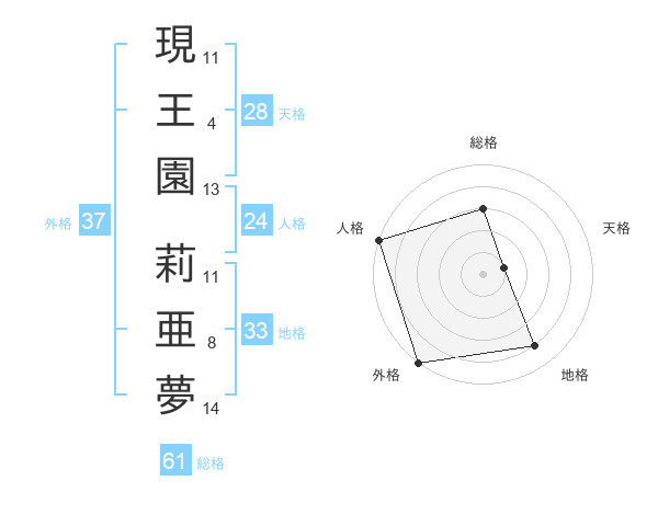 現王園 莉亜夢さんを姓名の画数から五運を鑑定