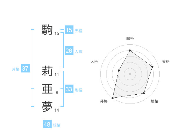 駒 莉亜夢さんの総格は48画の4点!