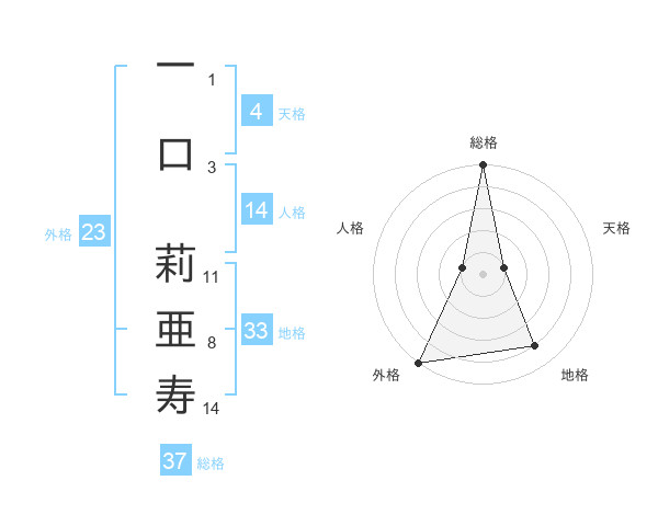 一口 莉亜寿さんを姓名の画数から五運を鑑定