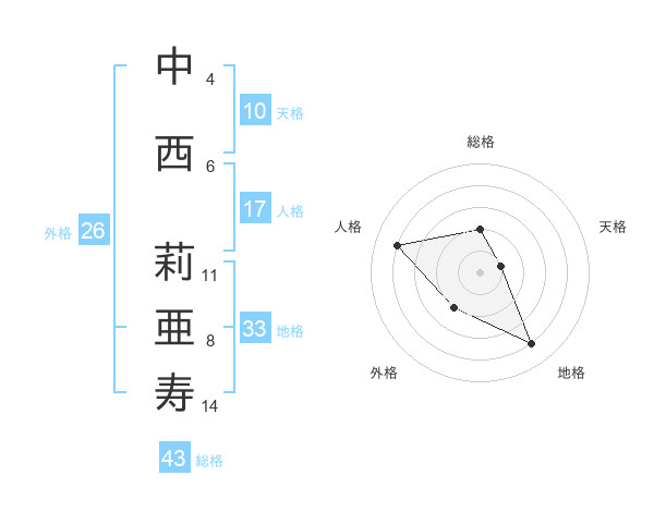 中西 莉亜寿さんを姓名の画数から五運を鑑定