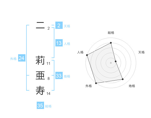 二 莉亜寿さんの総格は35画の4点!