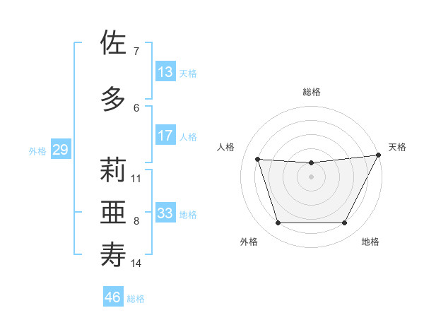 佐多 莉亜寿さんを姓名の画数から五運を鑑定