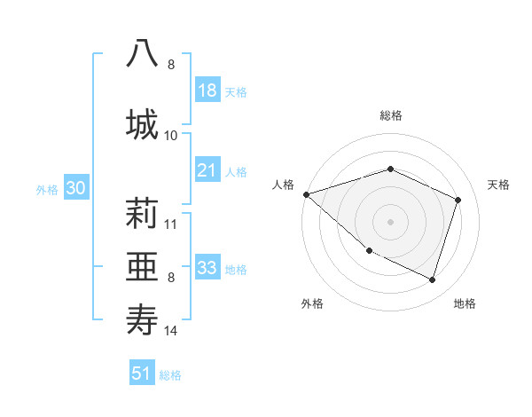 八城 莉亜寿さんを姓名の画数から五運を鑑定