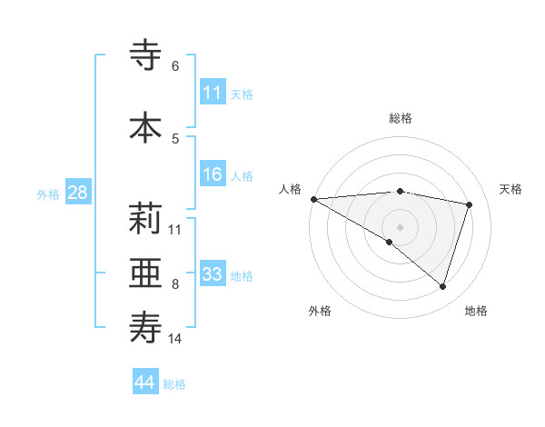 寺本 莉亜寿さんの総格は44画の2点!