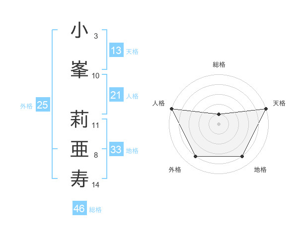 小峯 莉亜寿さんの天格は13画の5点!