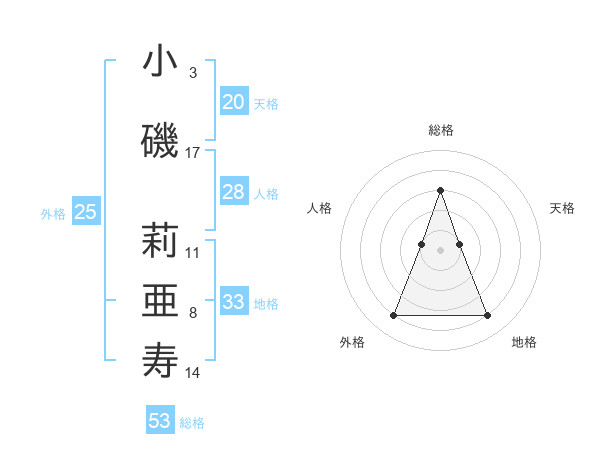 小磯 莉亜寿さんを姓名の画数から五運を鑑定