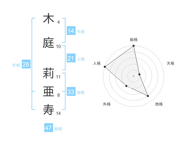 木庭 莉亜寿さんの総格は47画の5点!