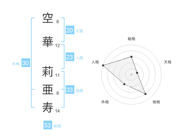 空華 莉亜寿さんの総格は53画の3点!