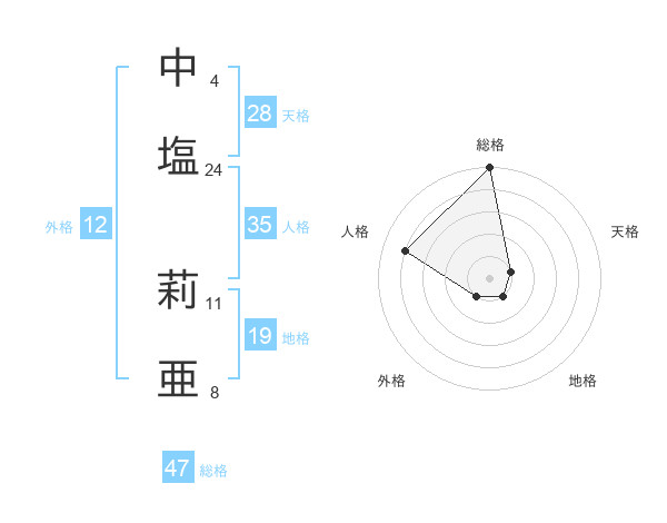 中塩 莉亜さんの総格は47画の5点!