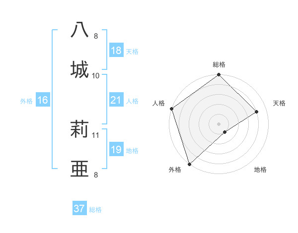 八城 莉亜さんを姓名の画数から五運を鑑定