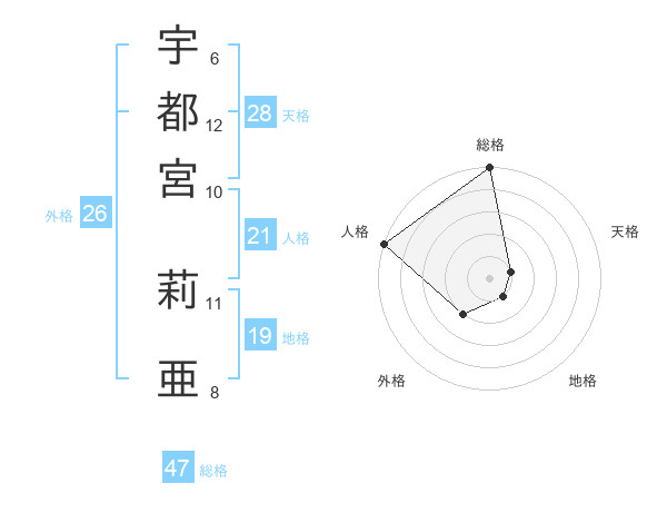 宇都宮 莉亜さんを姓名の画数から五運を鑑定