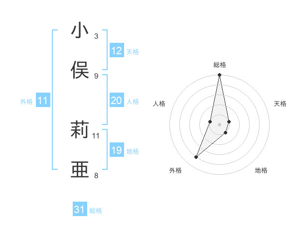 小俣 莉亜さんの天格は12画の1点!