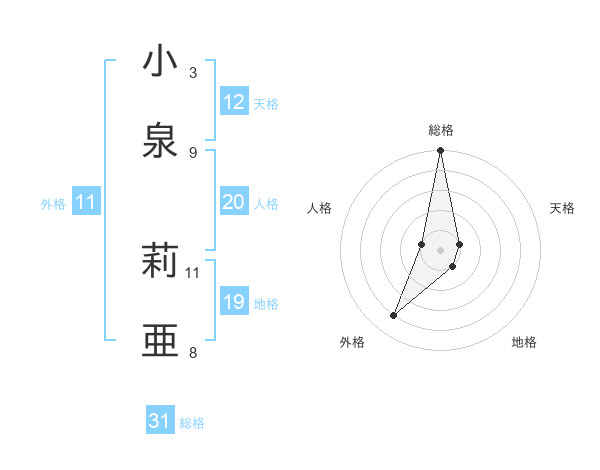 小泉 莉亜さんの総格は31画の5点!
