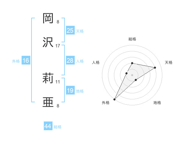 岡沢 莉亜さんの天格は25画の4点!