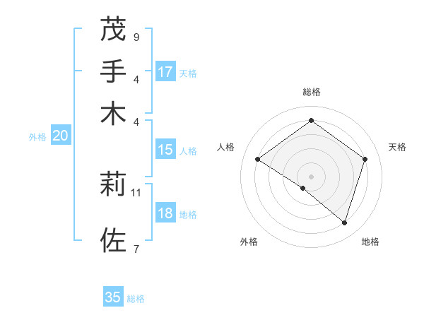 茂手木 莉佐さんの総格は35画の4点!