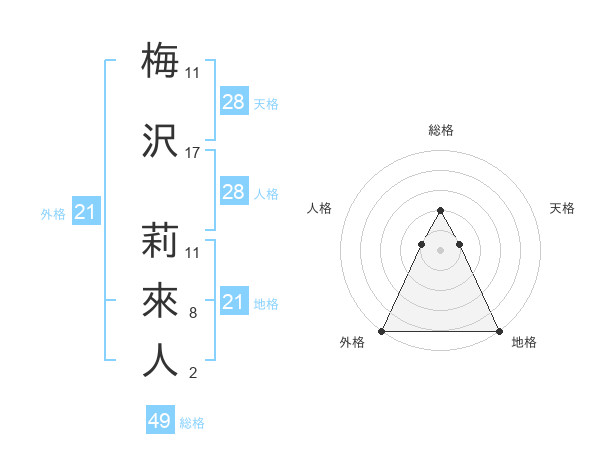 梅沢 莉來人さんの外格は21画の5点!