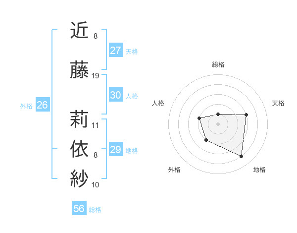 近藤 莉依紗さんの外格は26画の2点!