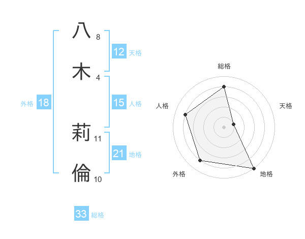 八木 莉倫さんを姓名の画数から五運を鑑定