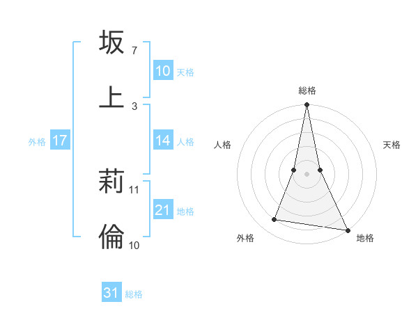 坂上 莉倫さんの総格は31画の5点!