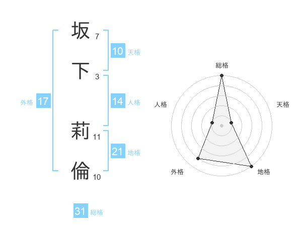 坂下 莉倫さんを姓名の画数から五運を鑑定