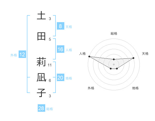 土田 莉凪子さんを姓名の画数から五運を鑑定