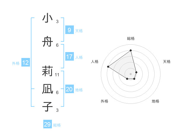 小舟 莉凪子さんを姓名の画数から五運を鑑定