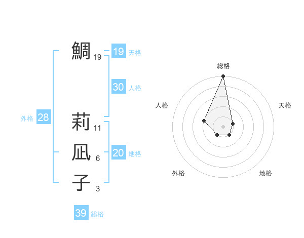 鯛 莉凪子さんの総格は39画の5点!