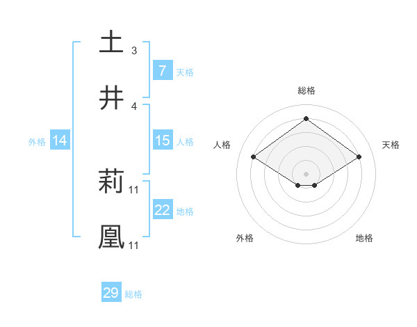 土井 莉凰さんの総格は29画の4点!