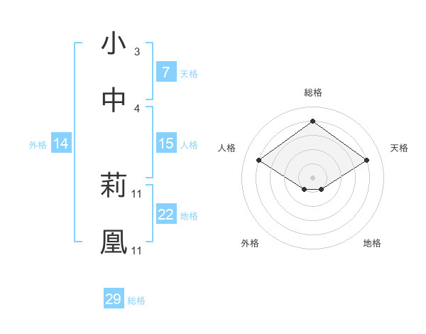 小中 莉凰さんを姓名の画数から五運を鑑定