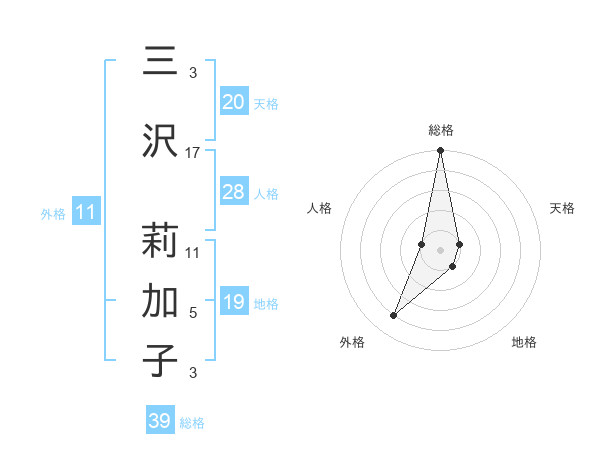 三沢 莉加子さんを姓名の画数から五運を鑑定