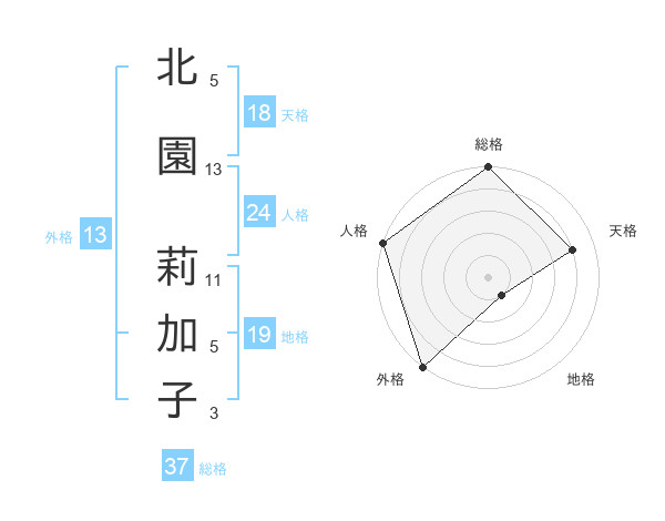 北園 莉加子さんを姓名の画数から五運を鑑定