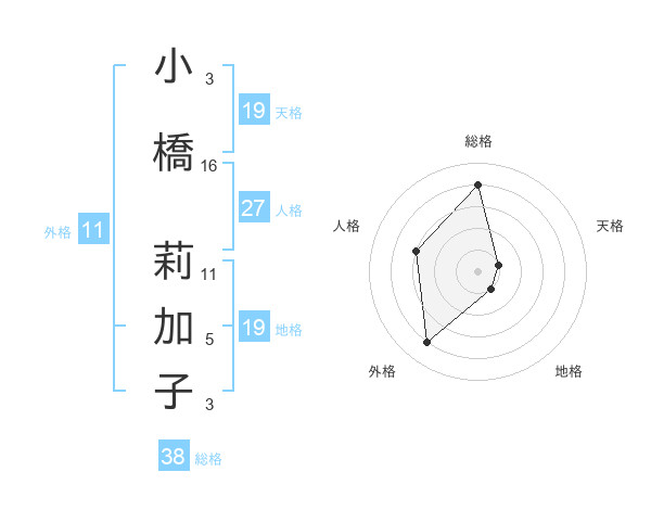 小橋 莉加子さんの総格は38画の4点!