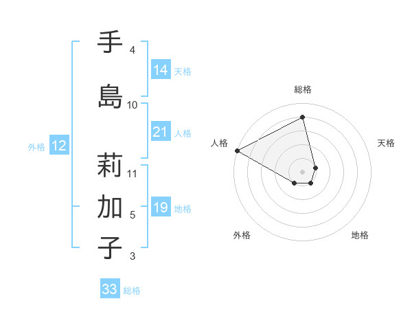 手島 莉加子さんを姓名の画数から五運を鑑定