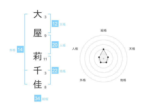 大屋 莉千佳さんの総格は34画の2点!