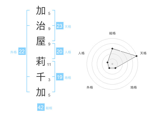 加治屋 莉千加さんを姓名の画数から五運を鑑定