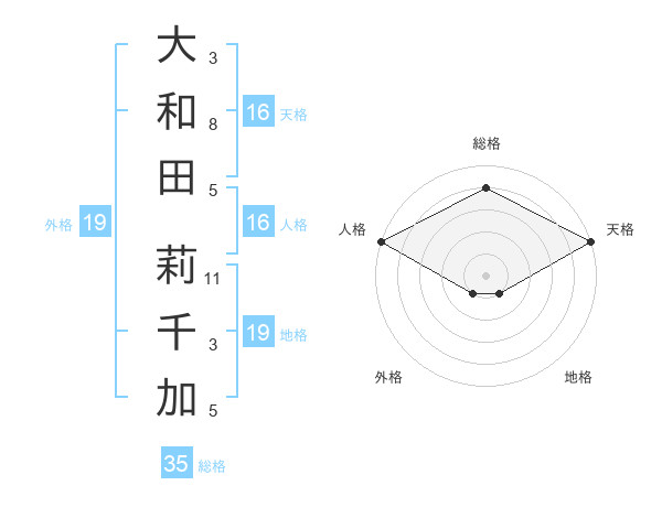 大和田 莉千加さんの天格は16画の5点!