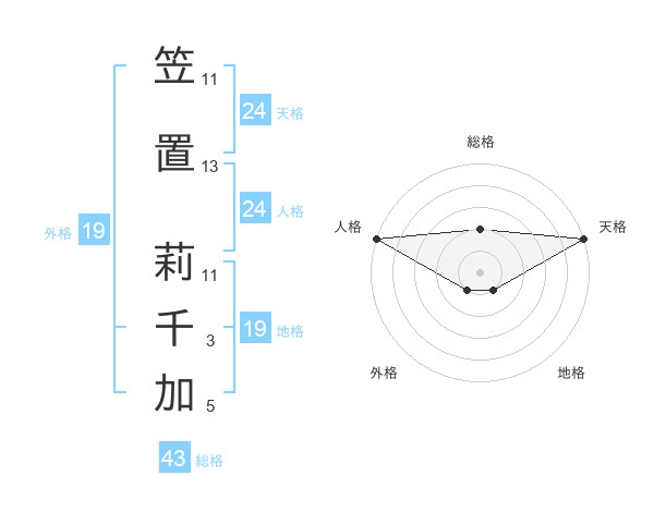 笠置 莉千加さんを姓名の画数から五運を鑑定