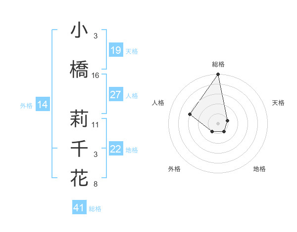 小橋 莉千花さんの天格は19画の1点!