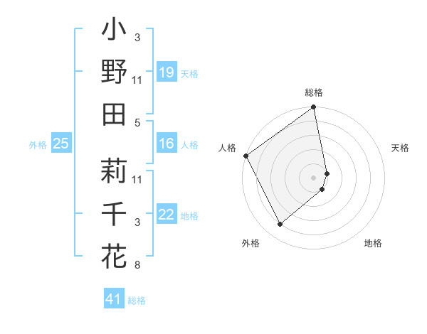 小野田 莉千花さんを姓名の画数から五運を鑑定