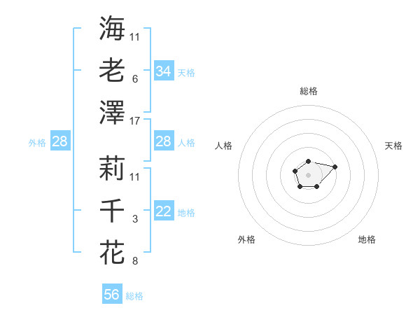 海老澤 莉千花さんを姓名の画数から五運を鑑定