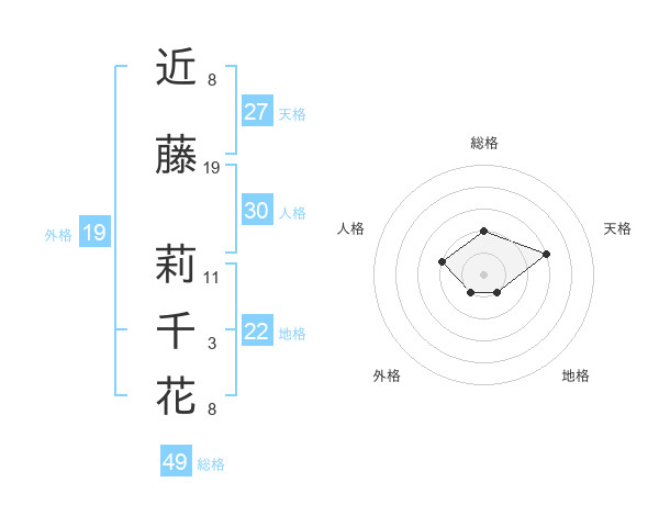 近藤 莉千花さんの総格は49画の2点!