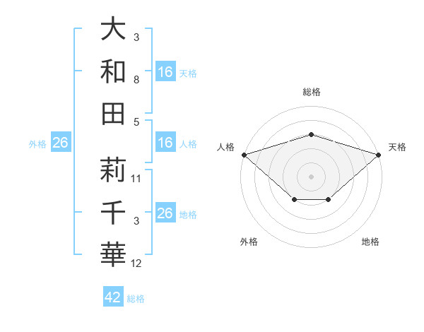 大和田 莉千華さんを姓名の画数から五運を鑑定