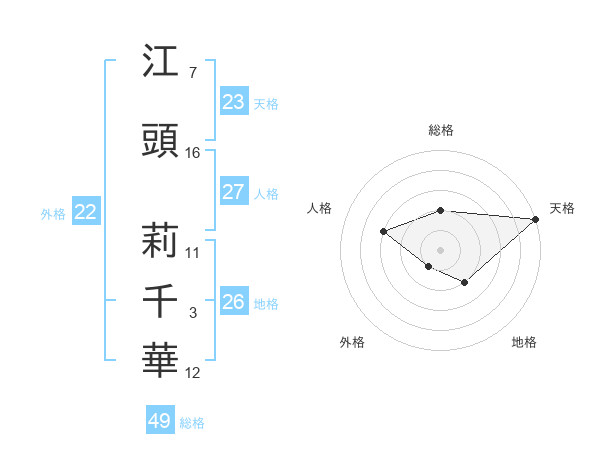 江頭 莉千華さんを姓名の画数から五運を鑑定