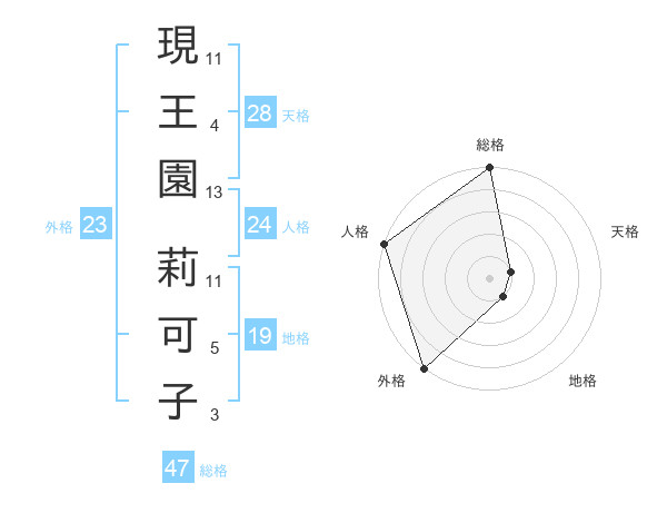 現王園 莉可子さんを姓名の画数から五運を鑑定