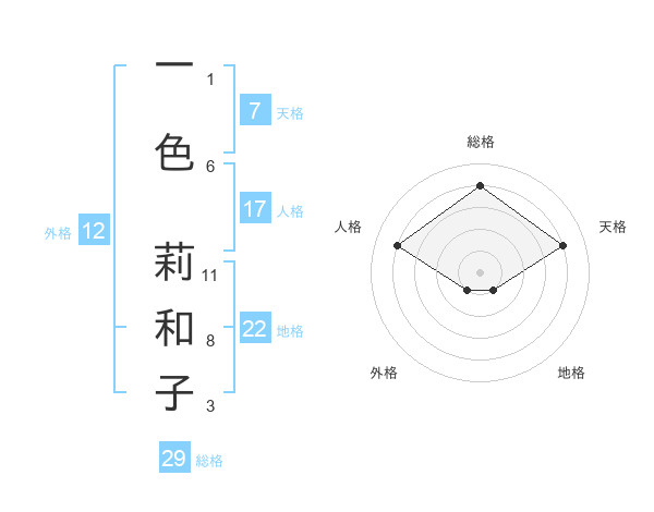 一色 莉和子さんを姓名の画数から五運を鑑定
