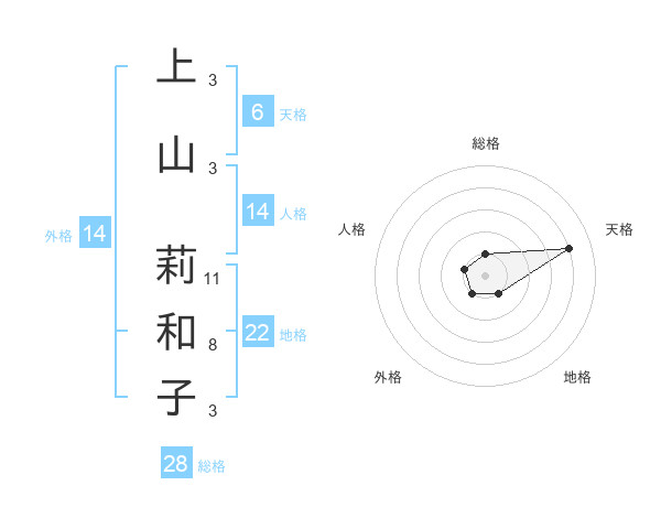 上山 莉和子さんを姓名の画数から五運を鑑定