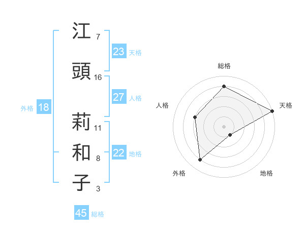江頭 莉和子さんを姓名の画数から五運を鑑定