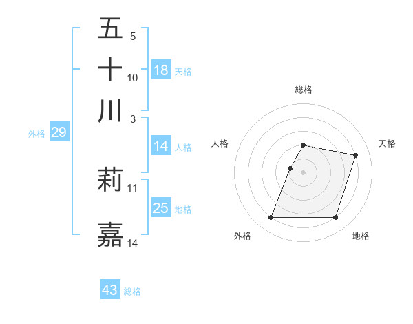 五十川 莉嘉さんを姓名の画数から五運を鑑定