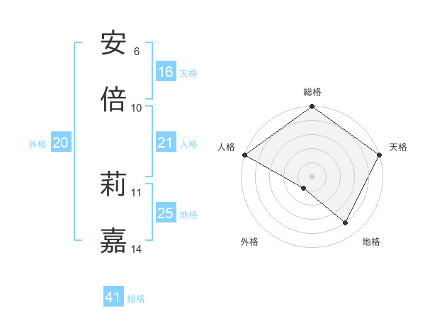 安倍 莉嘉さんを姓名の画数から五運を鑑定