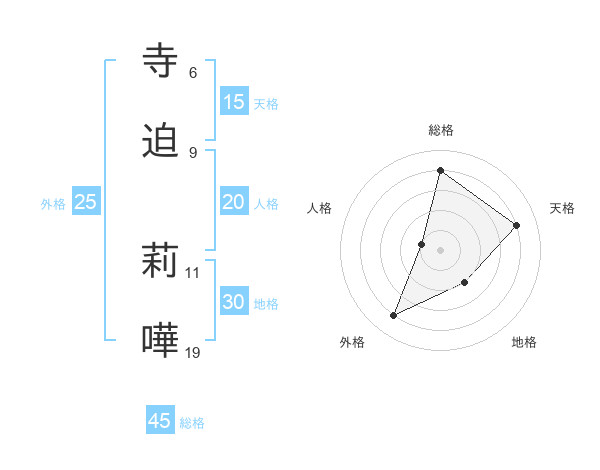 寺迫 莉嘩さんの天格は15画の4点!